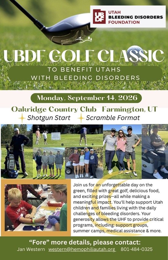 A fabulous day of golf, food, and prizes, awaits! All proceeds support the mission of the Utah Hemophilia Foundation.
